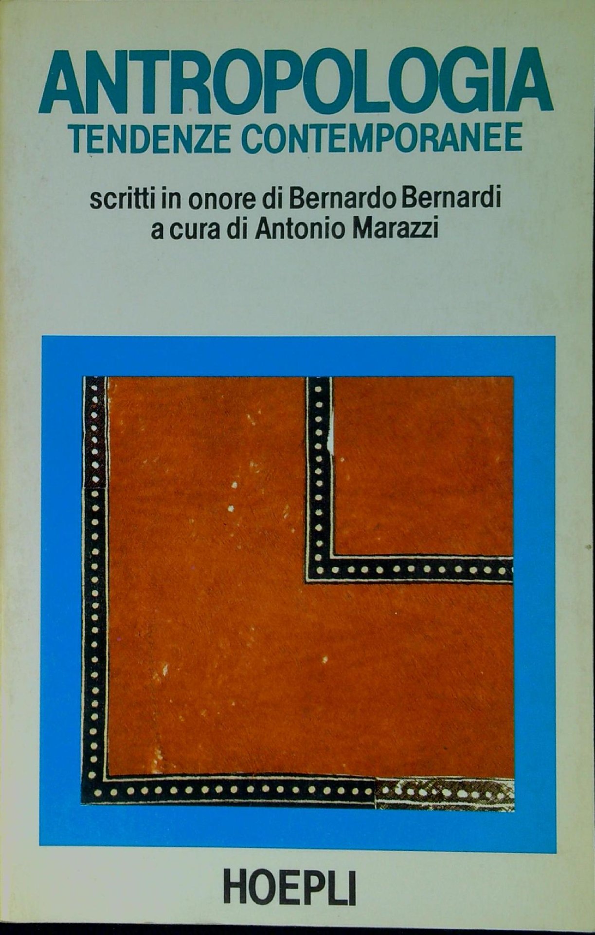 a cura di Antonio Marazzi Antropologia : tendenze contemporanee scritti in onore di Bernardo Bernardi. Milano, U. Hoepli ©1989, 312 p. ; 21 cm. (41002)