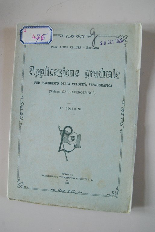 luigi chiesa applicazione graduale per l'acquisto della velocità stenografica metodo sistema gabelsberger noe noè. 1925 .