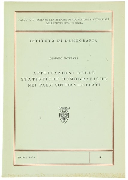 APPLICAZIONI DELLE STATISTICHE DEMOGRAFICHE NEI PAESI SOTTOSVILUPPATI. | Libri antichi e moderni | Mortara Giorgio.