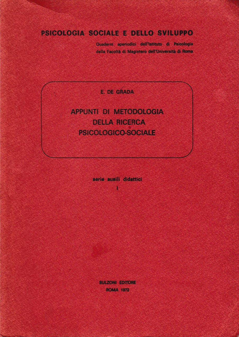 Appunti di metodologia della ricerca psicologico-sociale | Libri antichi e moderni | E. De Grada, ,E. De Grada
