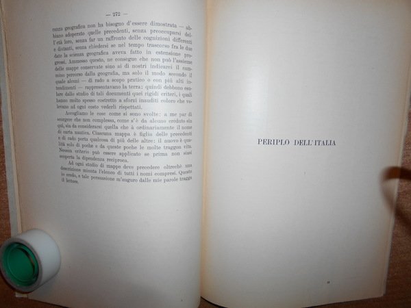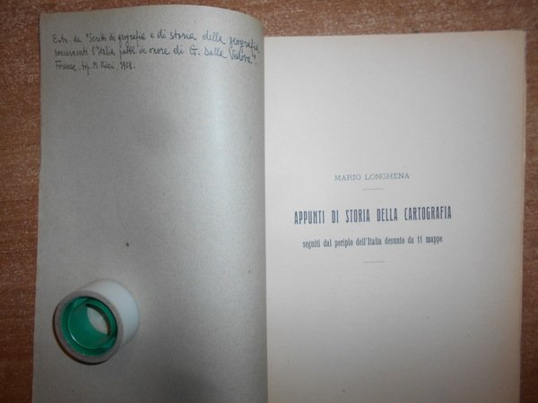 MARIO, LONGHENA. Appunti di Storia della Cartografia seguiti dal periplo dell' Italia desunto da 11 mappe. Firenze, Tip. M. Ricci, 1908. Estratto da " Scritti di Geografia e di Storia della Geografia concernenti l' Italia pubbl. in onore di G. DALLA VEDOVA". In-8°, br. muta. (i), da pag. 253 a pag. 291. Uff. A - II - 3 - 2