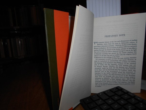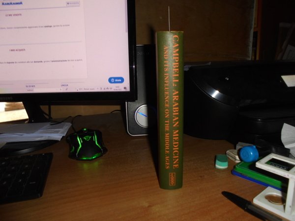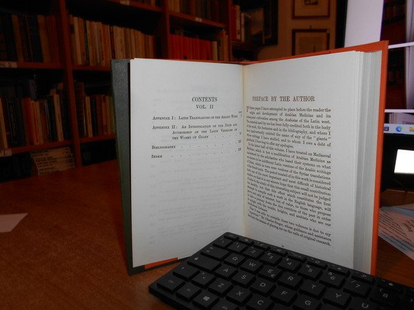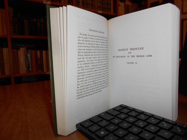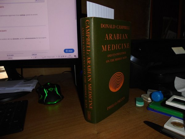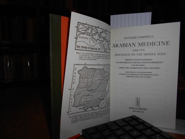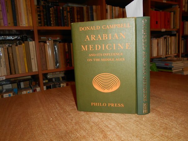 DONALD CAMPBELL. Amsterdam, Philo Press, s.d. circa 1970. ARABIAN MEDICINE and Its Influence on the Middle Ages. In-16° grande, tela edit. verde scura con titoli in oro sul piano e al dors, sovracopertina. 2 volumi legati assieme. xv, 207 pp.; 235, (4) pp. Come nuovo. Uff. F - 5