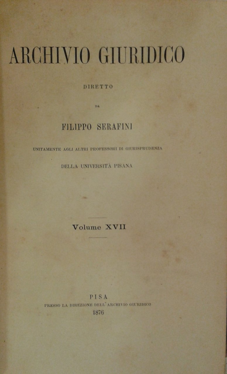 Archivio Giuridico. Diretto da Filippo Serafini. Volume XVII