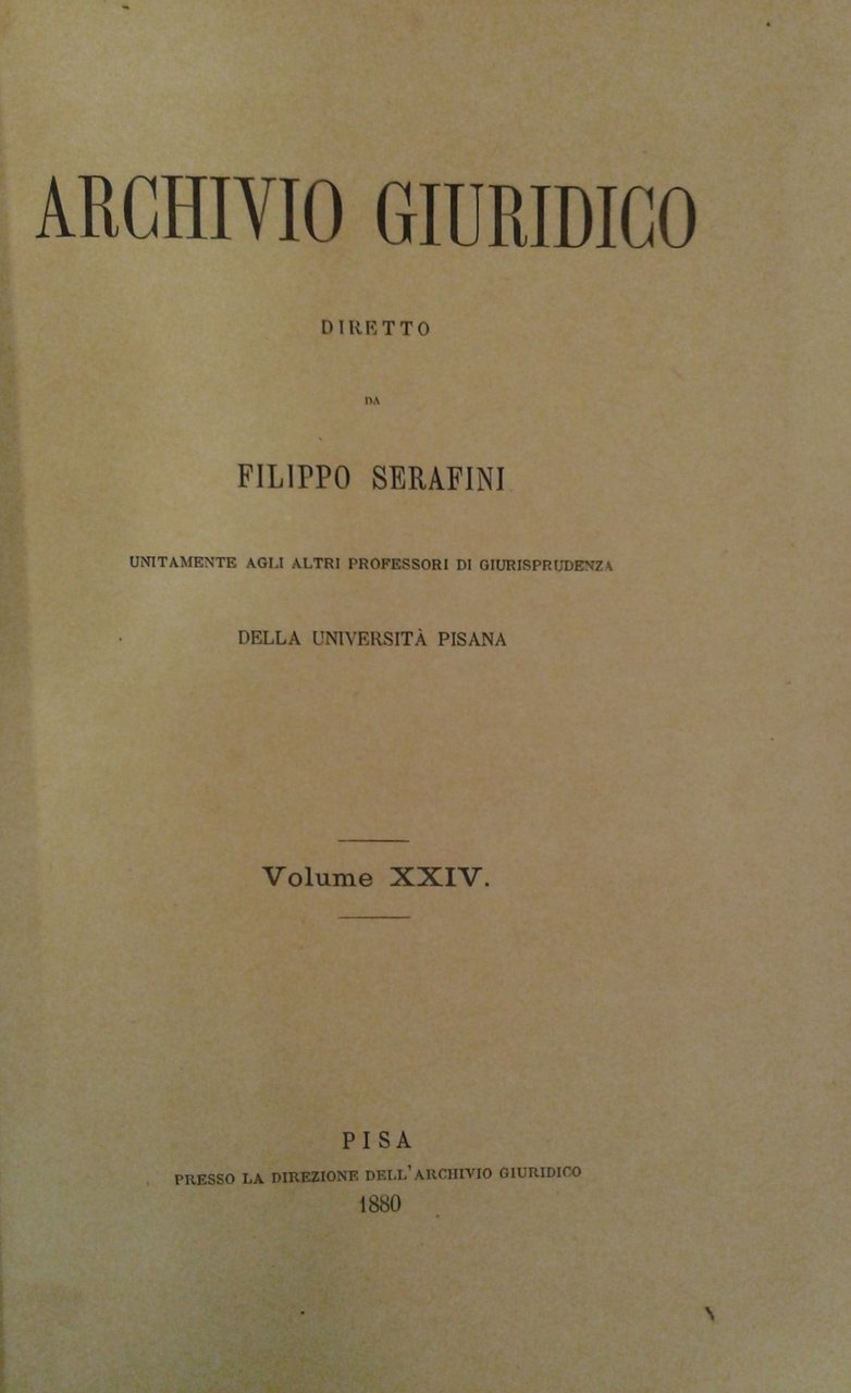Archivio Giuridico. Diretto da Filippo Serafini. Volume XXIV