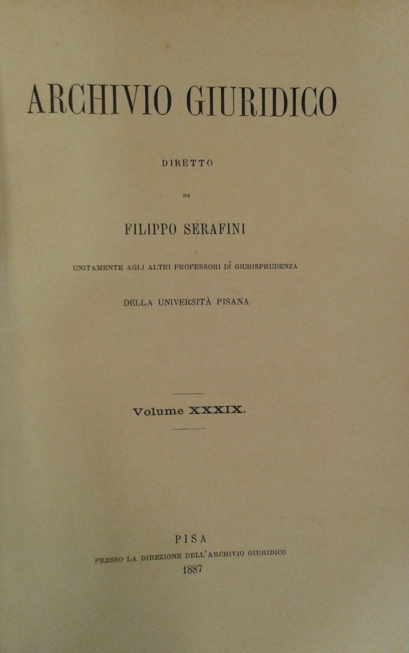 Archivio Giuridico. Diretto da Filippo Serafini. Volume XXXIX