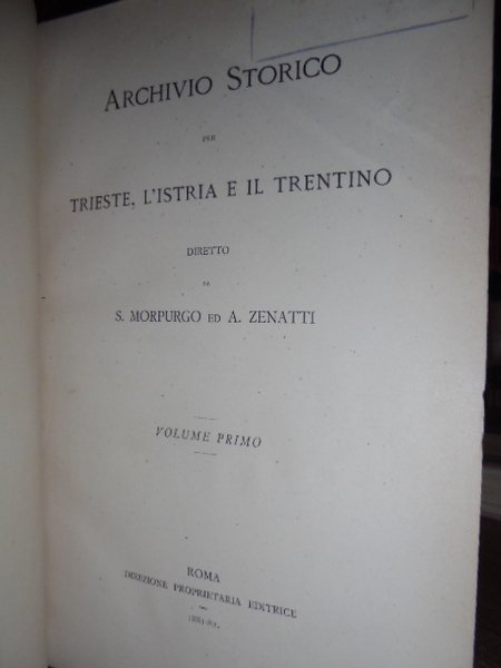 ARCHIVIO Storico per Trieste, l' Istria e il Trentino diretto da S. Morpurgo ed A. Zenatti | Libri antichi e moderni | S. Morpurgo Ed A. Zenatti