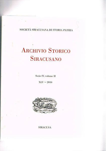 Archivio storico siracusano serie IV vol. II° anno 45° 2010. Osservazioni sugli ipogei di villa Landolina a Siracusa; Castello Maniace l'igiene e gli impianti tecnico-sanitari; la Giudecca di Siracusa; bambini e cimiteri, la sepoltura negata; ecc. | Libri antichi e moderni |