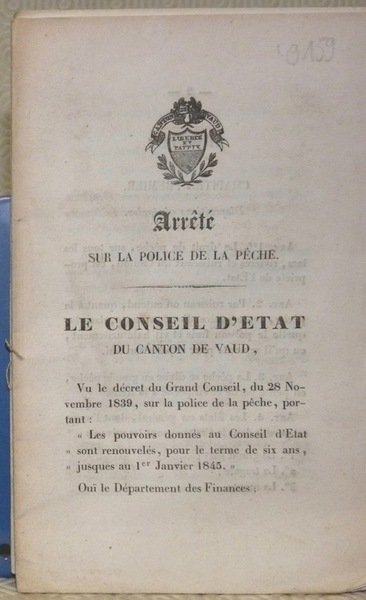 Arrêté sur la Police de la Pêche. | Libri antichi e moderni |