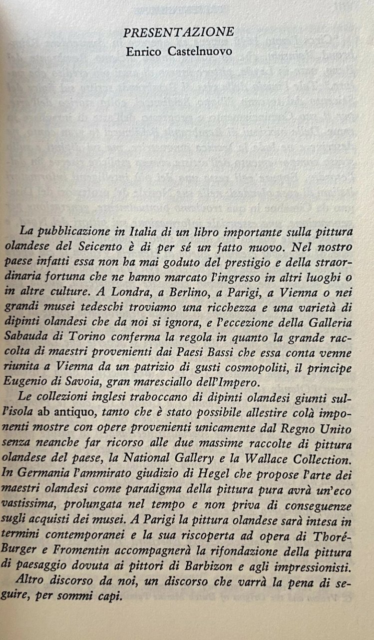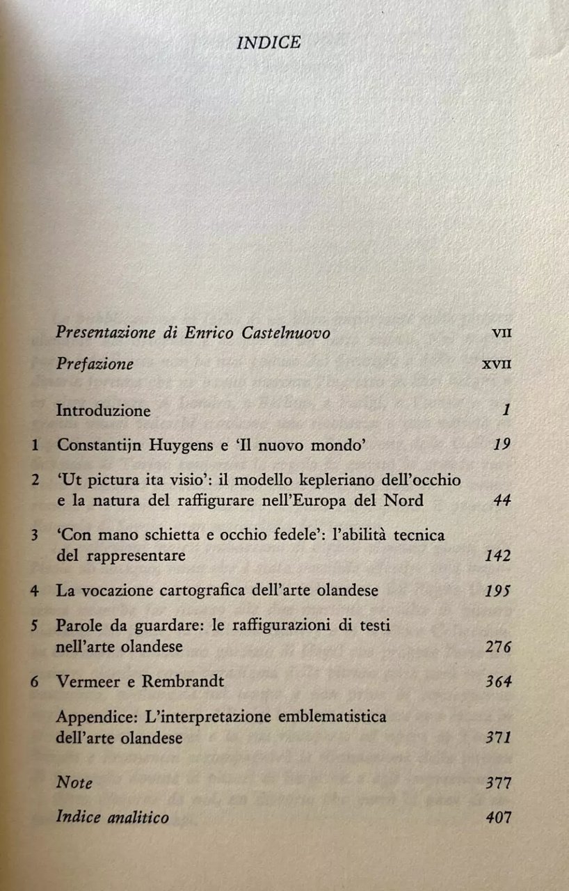 L'incanto speciale del libro è nella duttilità con cui questo assunto teorico si piega agli aspetti più segreti e in apparenza più marginali della pittura olandese del Seicento: la presenza costante dei nuovi strumenti ottici, l'amore per l'illustrazione documentaria, la passione calligrafica e soprattutto cartografica, che culmina nelle grandi carte di Vermeer. E se Vermeer è il compendio e il vertice di questa civiltà figurativa, Rembrandt è l'antagonista, il grande isolato immerso in un suo sogno metafisico nel vivo di una società mercantile e in fondo epicurea, mai sazia di contemplare le meraviglie del visibile e di perseguirne, borghesemente, il possesso. A questa avventura dello sguardo le splendide illustrazioni forniscono molto più che un debito sostegno visivo: l'intelligenza dei confronti ne fa un vero testo nel testo, dove il piacere estetico si risolve in raffinata esperienza intellettuale.