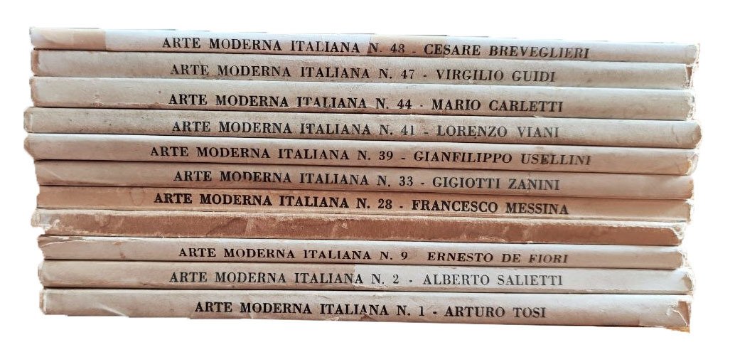 Arte moderna italiana. 15 Volumi: 1 (Arturo Tosi), 2 (Alberto Salietti), 9 (Ernesto De Fiori), 14 (Ferruccio Ferrazzi), 28 (Francesco Messina), 33 (Gigiotti Zanini), 39 (Gianfilippo Usellini), 41 (Lorenzo Viani), 44 (Mario Carletti), 47 (Virgilio Guidi), 48 (Cesare Breveglieri), 55 (Gerardo Dottori), 60 (Regina), 67 (Carlo Nangeroni), 69 (Renato di Bosso).