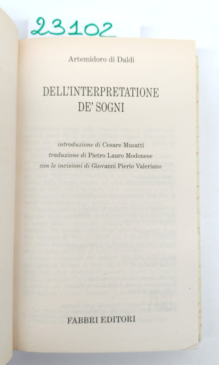 Artemidoro Dell'interpretazione dei sogni Fabbri ristampa 2000 | Libri antichi e moderni | Artemidoro