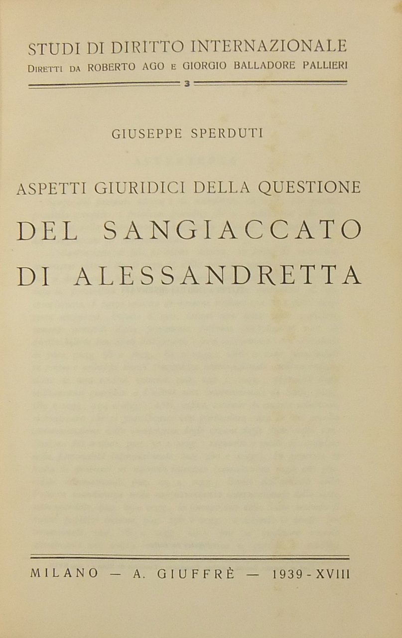 Aspetti giuridici della questione del Sangiaccato di Alessandretta | Libri antichi e moderni | Sperduti Giuseppe