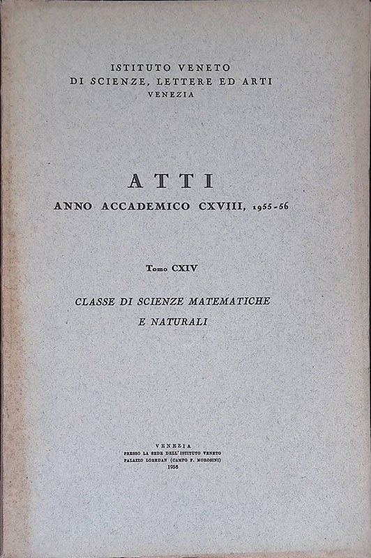 Atti anno accademico CXVIII 1955-56, tomo CXIV. Classe di scienze matematiche e naturali | Libri antichi e moderni |