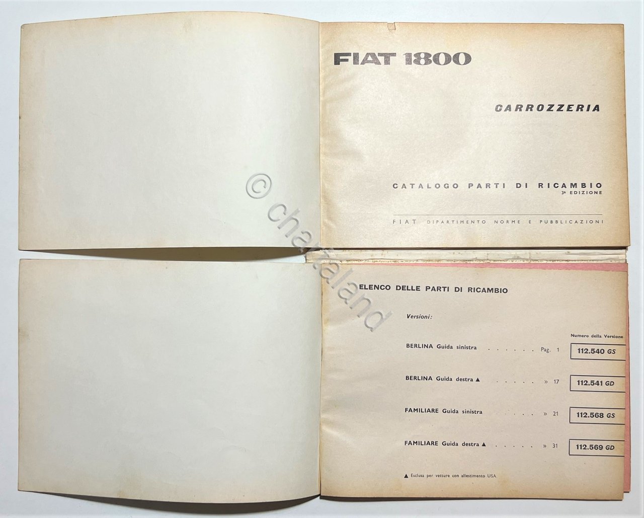 Automobilismo - FIAT 1800 Carrozzeria - Catalogo parti di ricambio - ed. 1961 | Libri antichi e moderni |