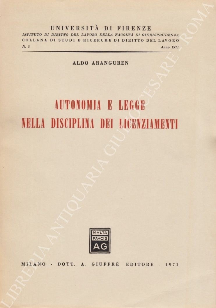 Autonomia e legge nella disciplina dei licenziamenti | Libri antichi e moderni | Aranguren Aldo