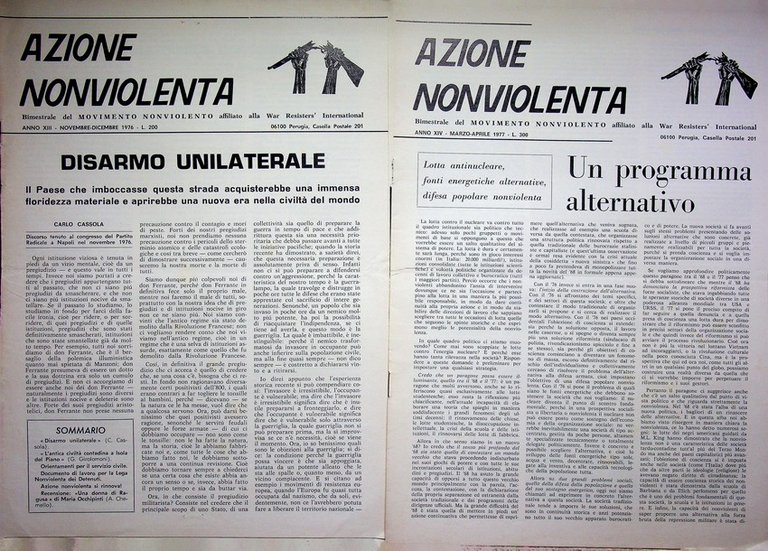 Azione nonviolenta: bimestrale del Movimento Nonviolento affiliato alla War Resisters' International: Anno XIII (1976): N. 6; Anno XIV (1977): N. 2.