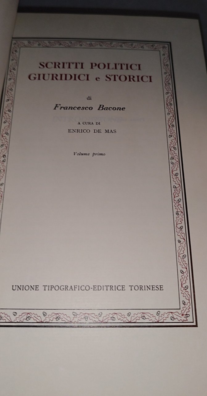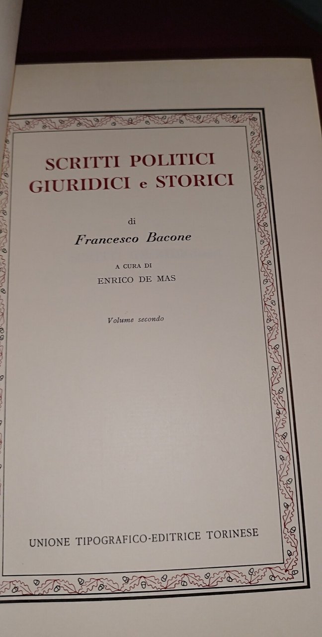 bacone scritti politici giuridici e storici classici utet 2 volumi