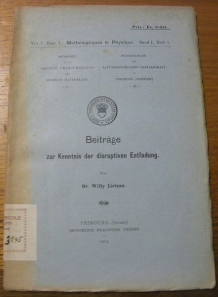 Beiträge zur Kenntnis der disruptiven Entladung. Mitteilunen der Naturforschenden Gesellschaft in Freiburg. | Libri antichi e moderni | Lietzau, Willy.