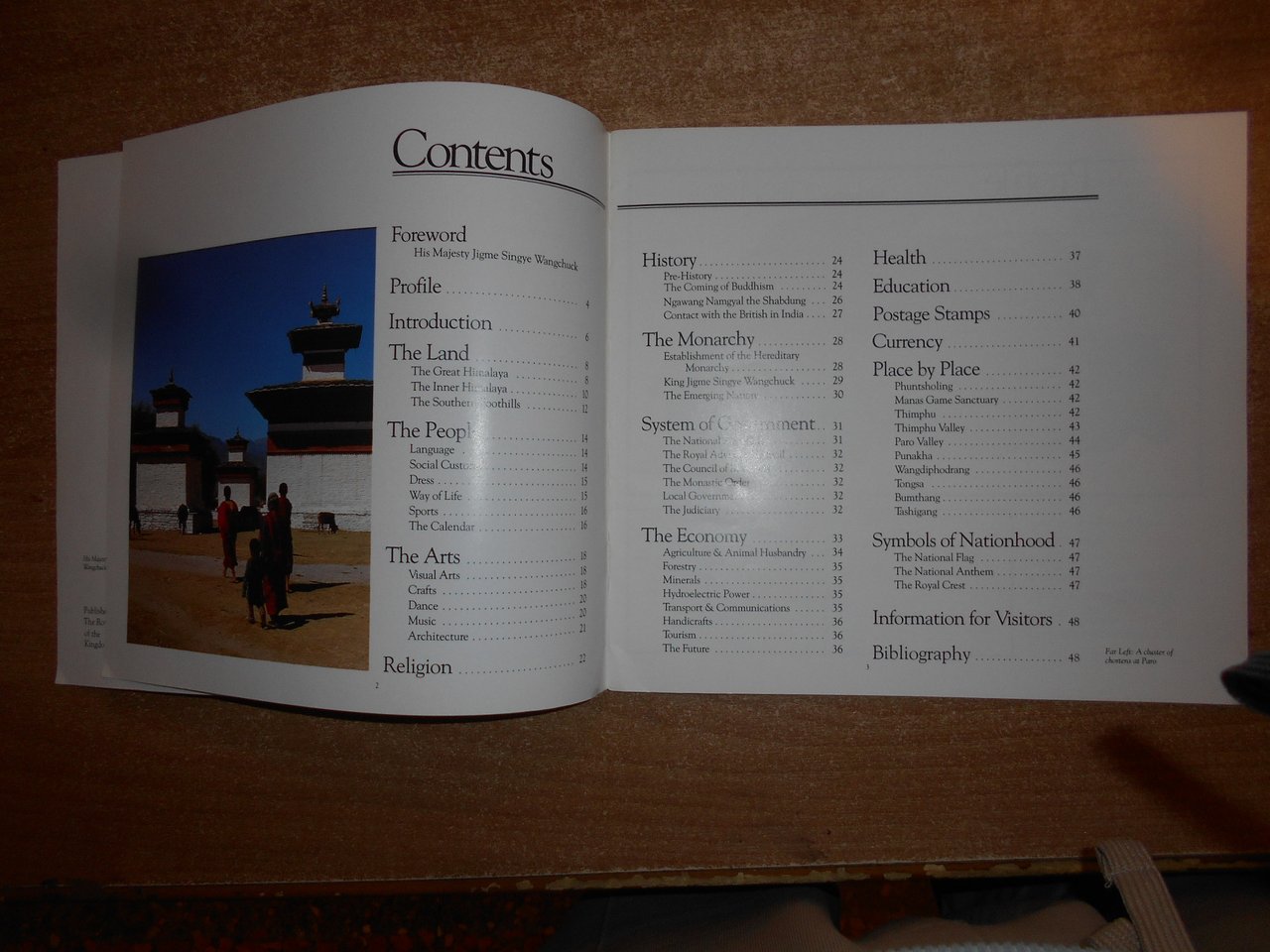 Jigme Singye Wangchuck. Published, The Royal Government of The Kingdom Bhutan, 1979. BHUTAN Himalayan Kingdom. In-8° quadrato, br. ill. a col. con punti metallici. 48 pp. con numerose illustrazioni fotografiche a colori n.t. Ottimo stato con testo in inglese. Neg. viaggi entro busta.