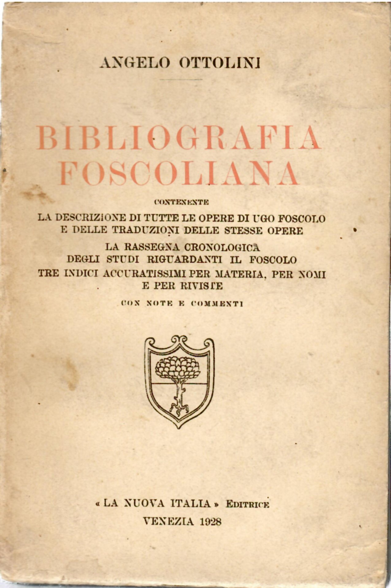 Bibliografia foscoliana. Contenente la descrizione di tutte le opere di Ugo Foscolo e delle traduzioni delle stesse opere, la rassegna cronologica degli studi riguardanti il Foscolo, tre indici accuratissimi per materia, per nomi e per riviste; con note e commenti | Libri antichi e moderni | Ottolini, Angelo