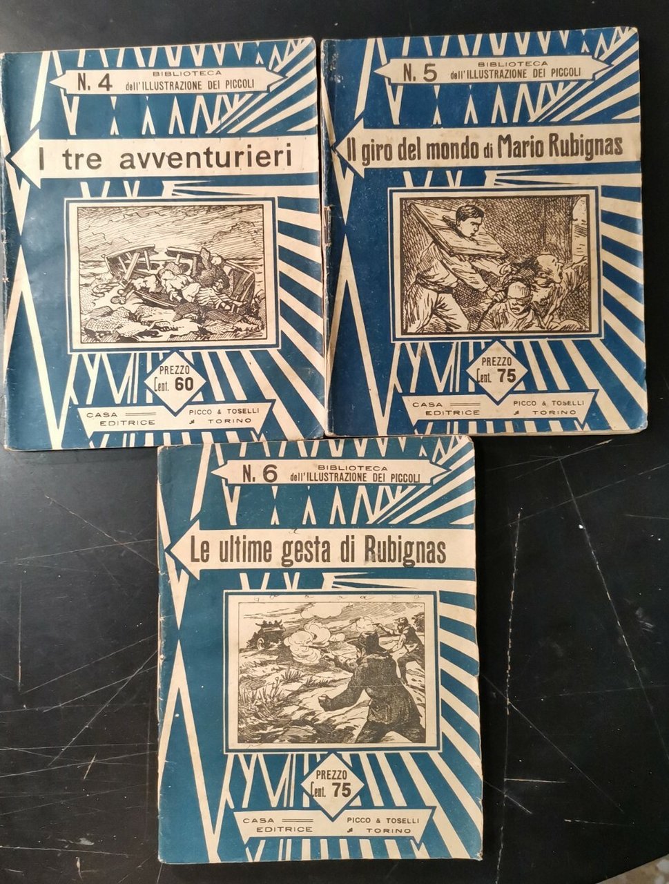 n. 3 “Le avventure del leone bruto”; n. 4 “I tre avventurieri”; n. 5 “Il giro del mondo di Mario Rubignas”;