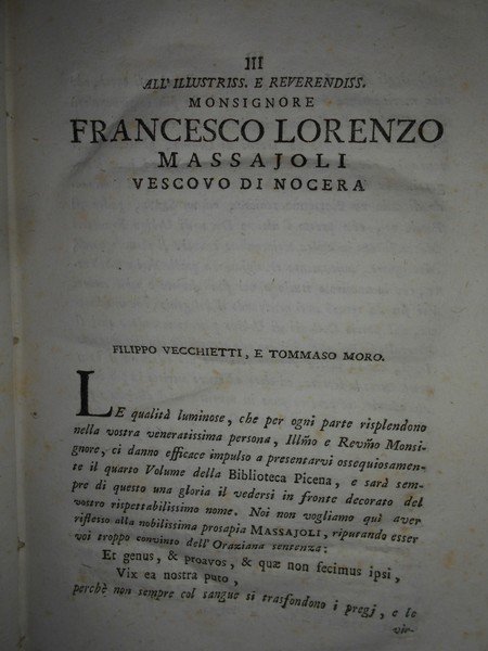 BIBLIOTECA PICENA O SIA NOTIZIE ISTORICHE DELLE OPERE E DEGLI SCRITTORI PICENI | Libri antichi e moderni | Filippo, Vecchietti. Moro