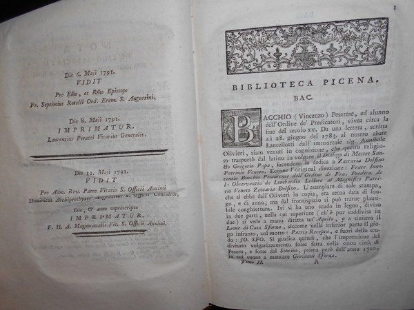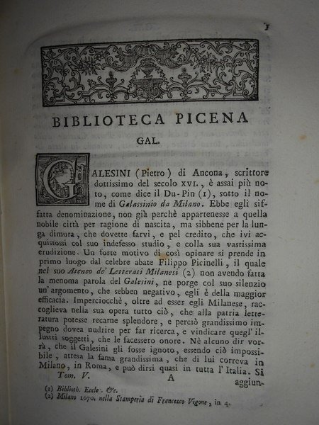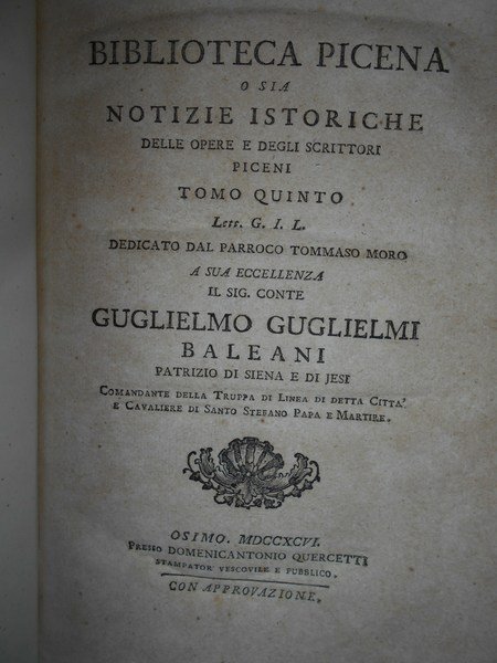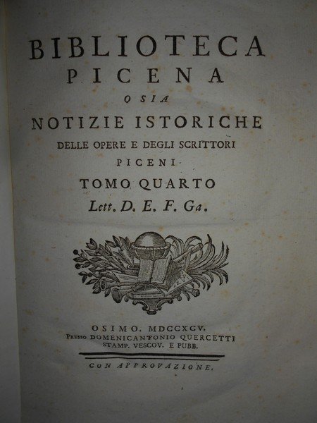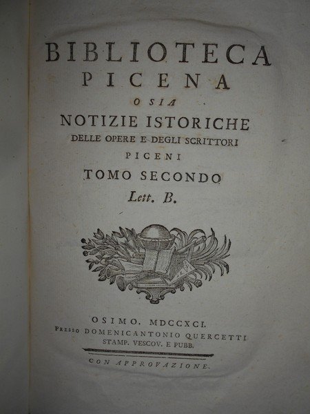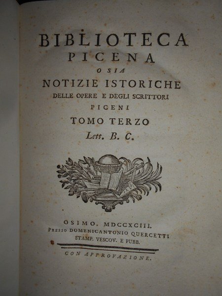 BIBLIOTECA PICENA O SIA NOTIZIE ISTORICHE DELLE OPERE E DEGLI SCRITTORI PICENI