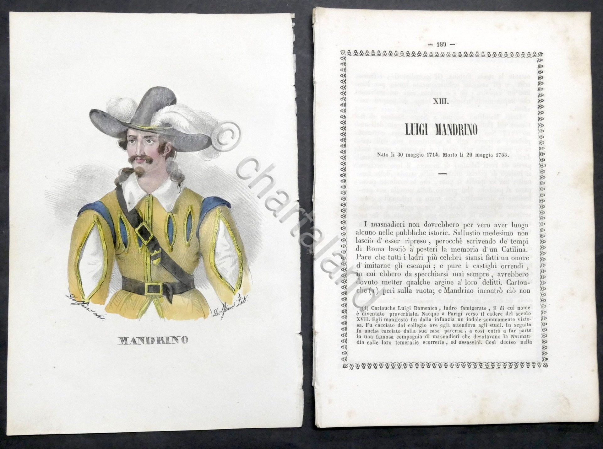 Biografia e stampa di Luigi Mandrino - 1842