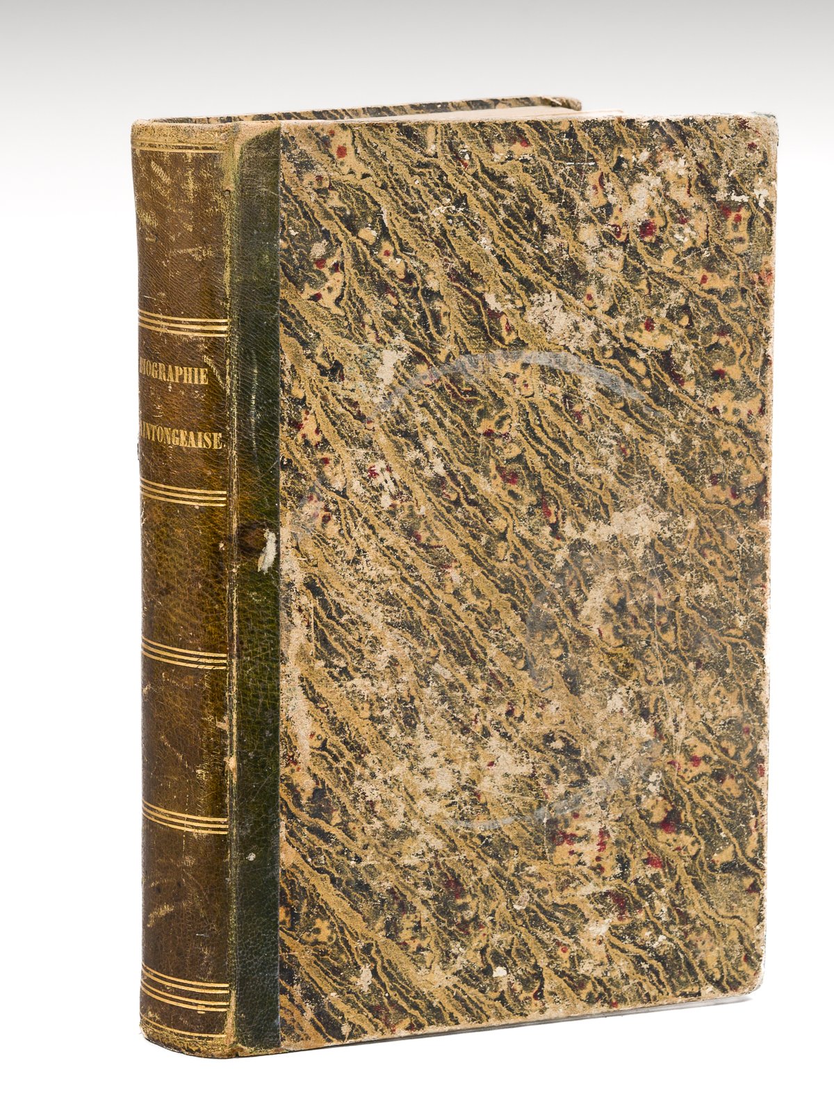 Depuis les temps les plus reculés jusqu'à nos jours, 1 vol. grand in-8 reliure de l'époque demi-basane marron, reliure signée de A. Locard (33 rue du Temple à La Rochelle), Au Dépôt Général de la Biographie Saintongeaise, Chez M. Niox, Saintes, 1851, 642 pp. avec 5 planches hors texte Exemplaire bien complet des 5 portraits lithographiés. Etat très satisfaisant (rel. un peu frottée, accrocs parfois importants mais sans manque à deux feuillets, qq. rouss., bon état par ailleurs) pour cet exemplaire relié à l'époque, à La Rochelle.