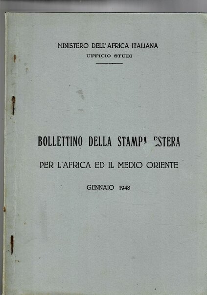 Bollettino della stampa estera per l'Africa e il Medio Oriente, disponiamo dell'anno 1948 dei fasc. gen. mar. lug-ago. set. ott. nov. dic. | Libri antichi e moderni | Ministero Dell'Africa Italiana.