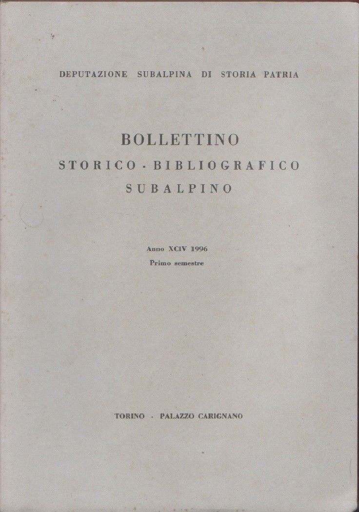Bollettino storico-bibliografico subalpino Anno XCIV 1996. Primo semestre
