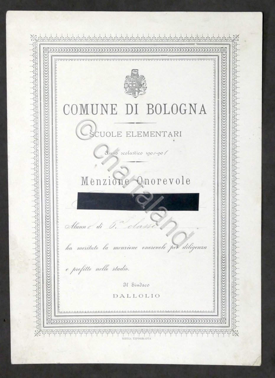 Bologna Scuole Elementari - Diploma di Menzione Onorevole - Anno 1900 / 1901 | Libri antichi e moderni |