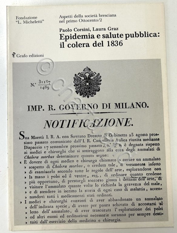 Brescia Ottocento - Epidemia e salute pubblica: il colera del 1836 - ed. 1982 | Libri antichi e moderni |