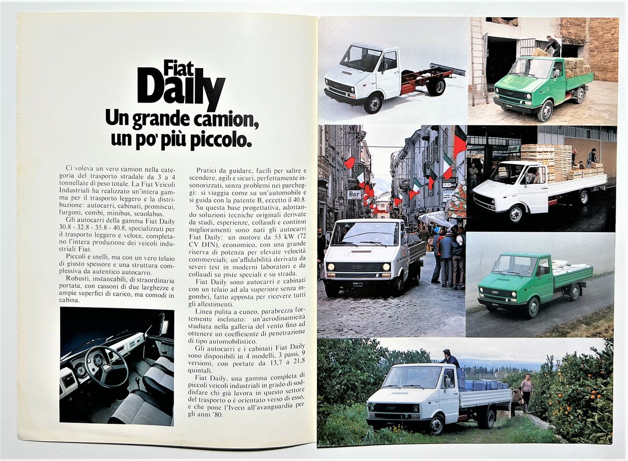 Brochure - FIAT Veicoli Industriali - Fiat Daily - Autocarri - Anni '80 Testo in lingua italiana. Pagine 6 con illustrazioni. Copertina morbida. Condizioni molto buone con piccoli segni del tempo .