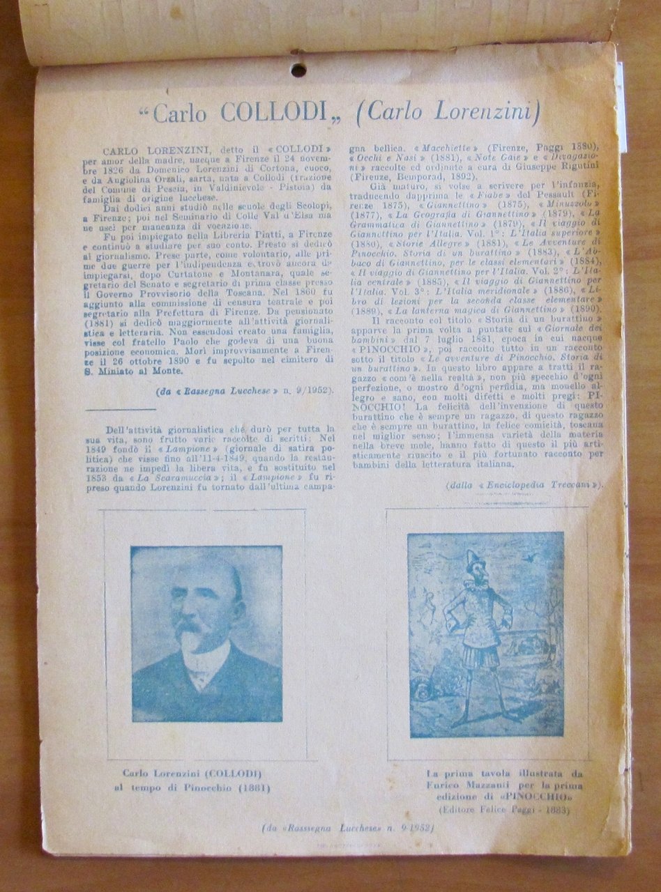 CALENDARIO 1954 - LE AVVENTURE DI PINOCCHIO Illustrate | Libri antichi e moderni | A cura della F.I.L.T. . Federazione Italiana Lavoratori Tuberc