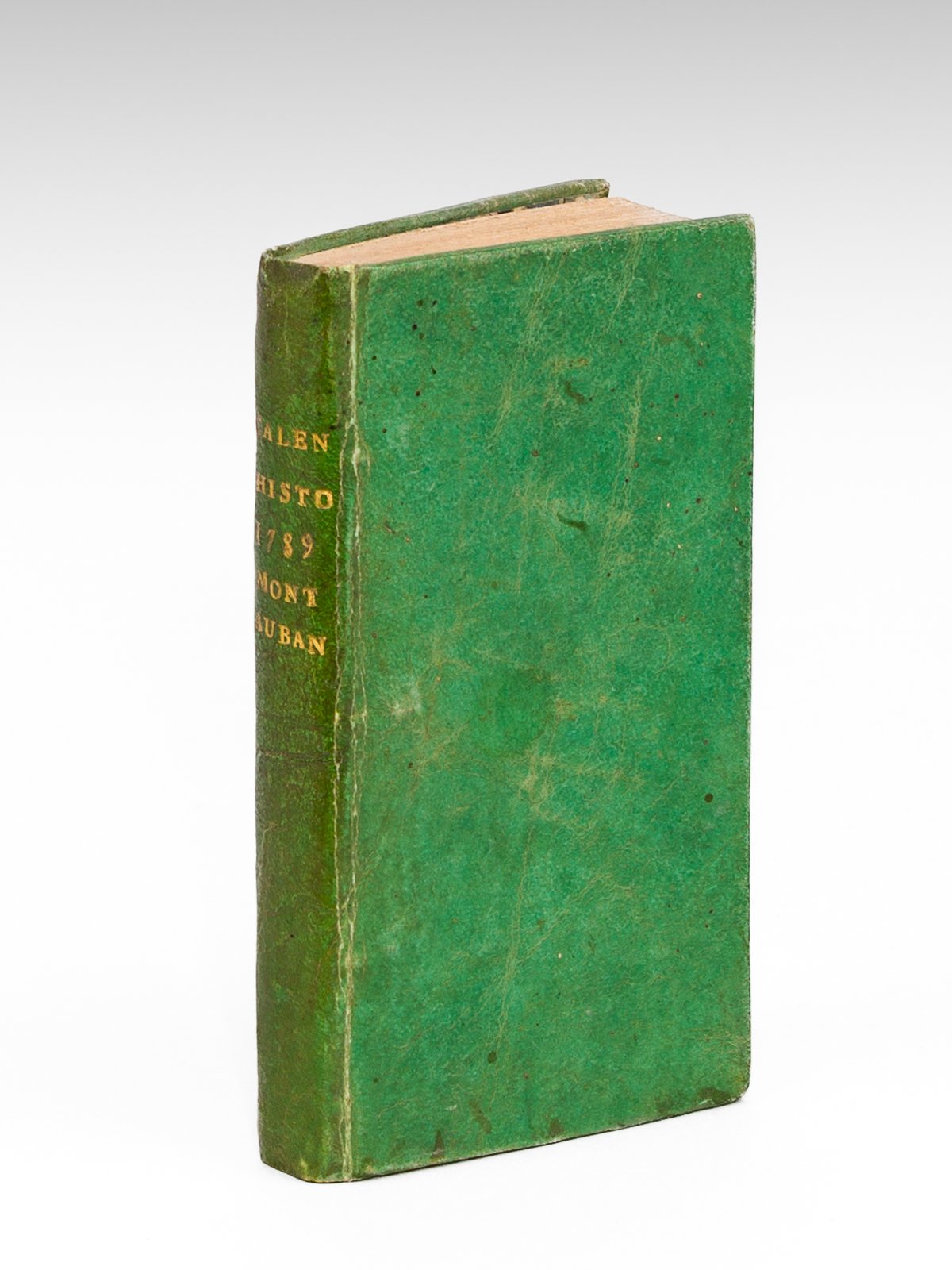 Présenté à M. de Trimond, Intendant de ladite Généralité, 1 vol. in-24 reliure de l'épopque plein vélin vert, Chez Vincent Teulières, Imprimeur du Roi & de l'Intendance, A Montauban, s.d., 14 ff., 255 pp. Bon exemplaire pour ce bel almanach de Montauban, pour une année historique ! Bon exemplaire (rare petits frott., très bon état par ailleurs, ex-libris en garde).