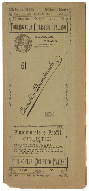 CANNOBIO - DOMODOSSOLA. Planimetrie e Profili Ciclistici - N. 51. | Libri antichi e moderni | Bertarelli L.V.
