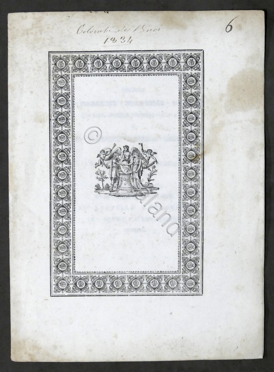 Cantico per le nozze del Marchese Francesco De Buoi e della Contessa Camilla Colombi Fiordibello - 1834 Pag. 6 Copertina morbida - Lingua italiana. Dimensioni: 17 x 24 cm ca. Condizioni generali buone. Copertina come da foto.