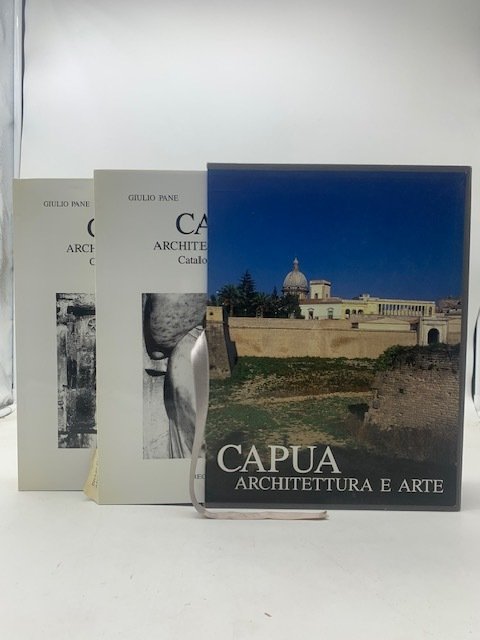 2 volumi in 4, cm. 24,5 x 32, complessivamente pp. 631 + (5), con 1126 illustrazioni in bianco e nero e a colori anche a piena pagina nel testo. Legatura in tela editoriale grigia con titoli in argento al dorso. Sovraccoperta illustrata in bianco e nero . Cofanetto rigido in tela con illustrazioni a colori applicat su entrambi i piatti. Strapo composto alla parte inferiore del dorso del volume primo. Lievi segni d'uso al cofanetto. L'opera esplora il patrimonio architettonico e artistico di Capua dall'età romana in poi.