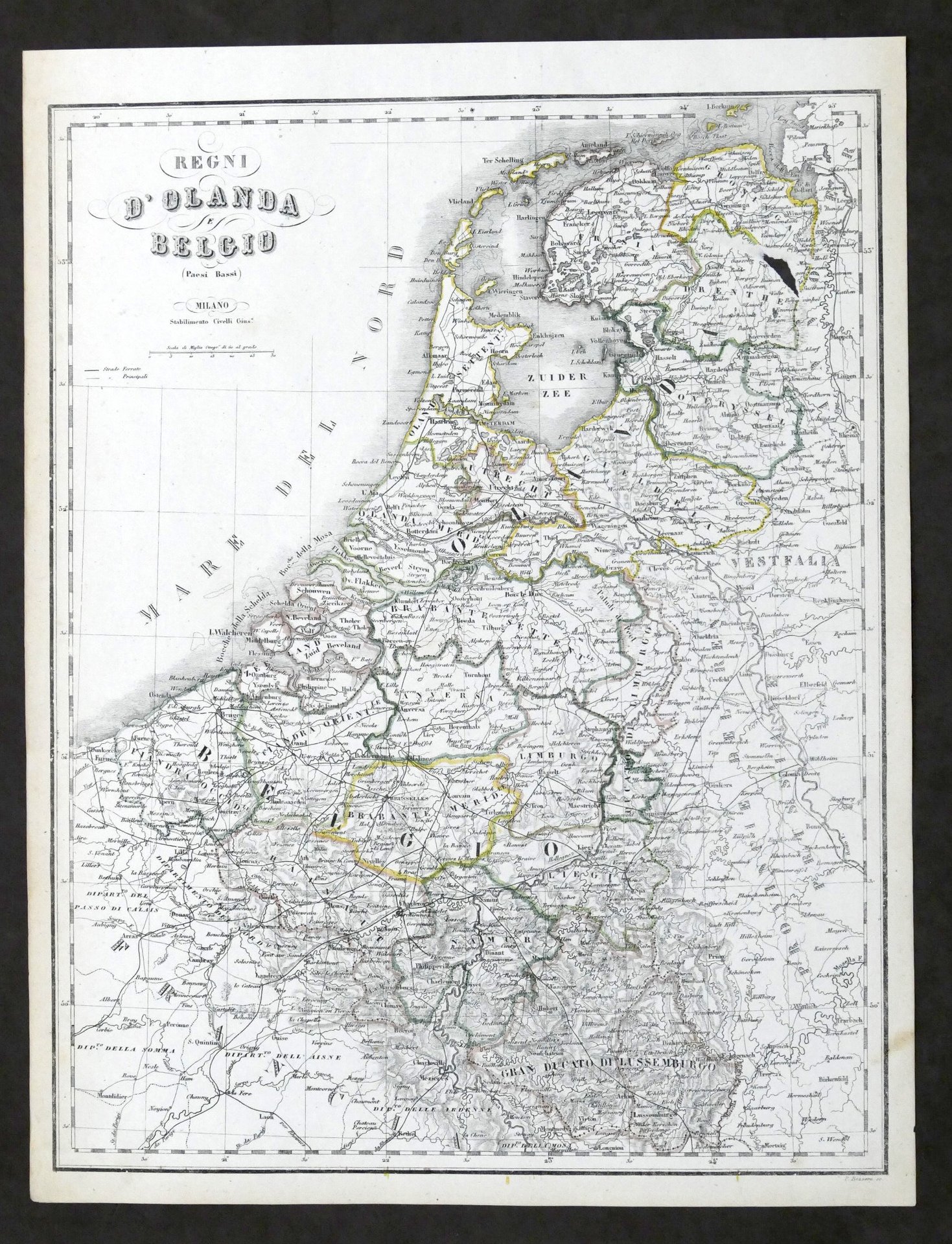 Carta geografica - Regni Olanda e Belgio - Stabilimento Civelli - 1880 ca. | Libri antichi e moderni |