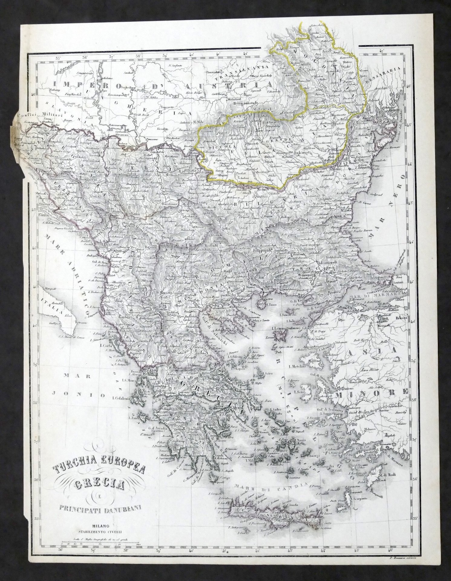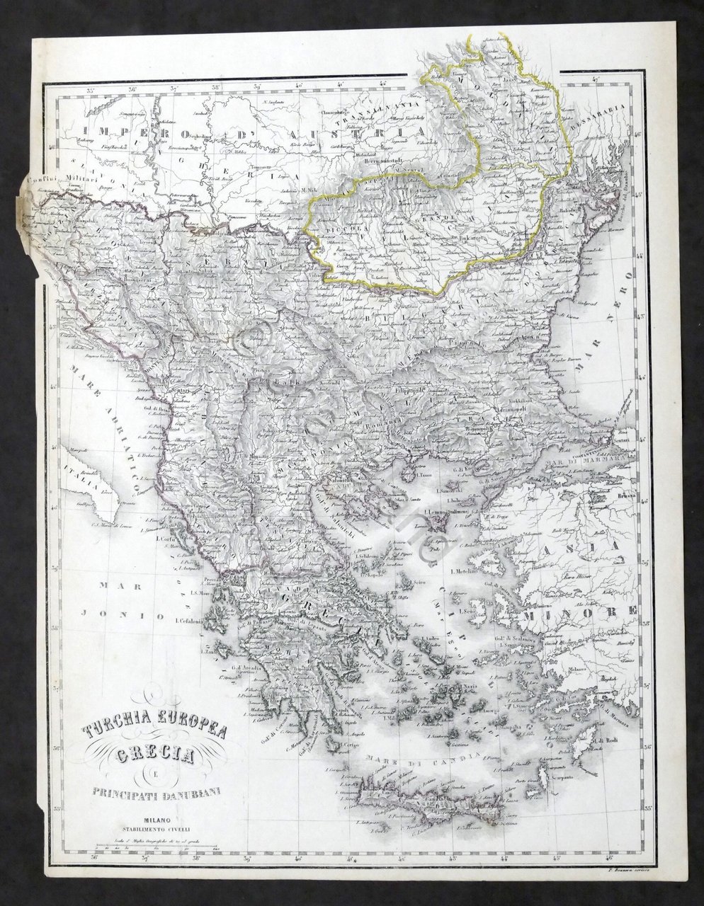 Carta geografica Turchia Europea - Grecia - Ed. Stabilimento Civelli - 1880 ca. Dimensioni tavola: 32 x 42 cm ca. Tratti colorati a mano. Condizioni molto buone.