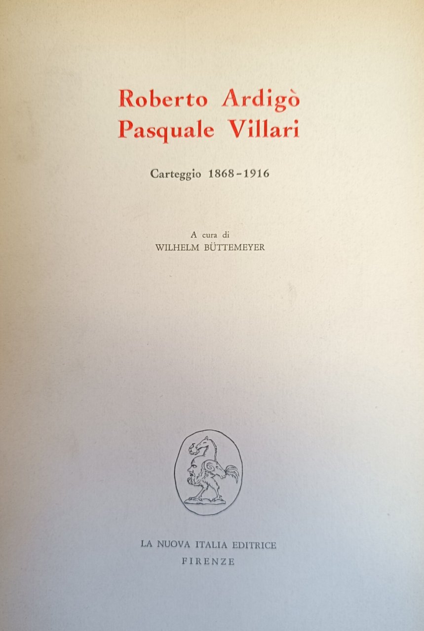 CARTEGGIO 1868 - 1926 | Libri antichi e moderni | ARDIGO'' ROBERTO - VILLARI PASQUALE, ,ARDIGO'' ROBERTO - VILLARI PASQUALE