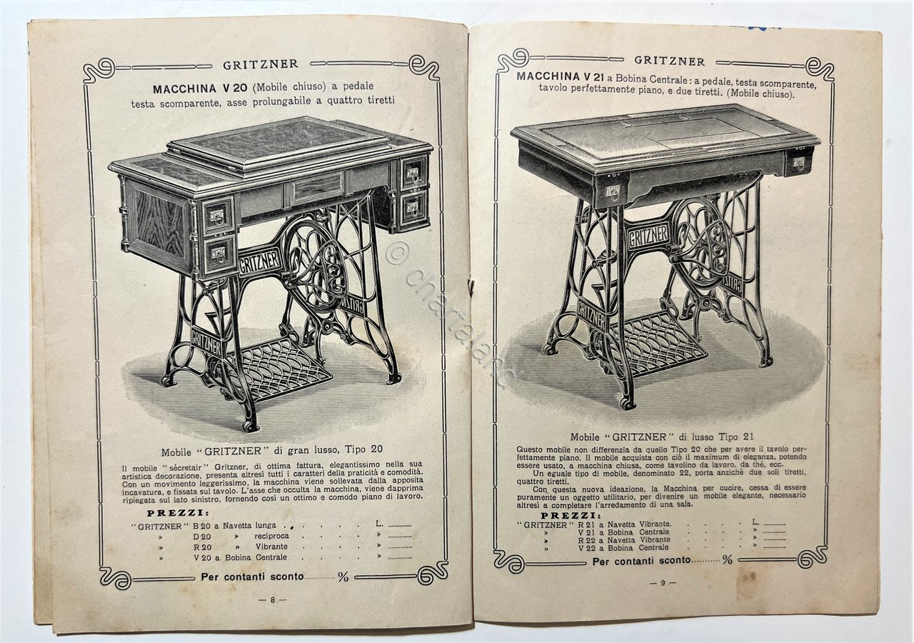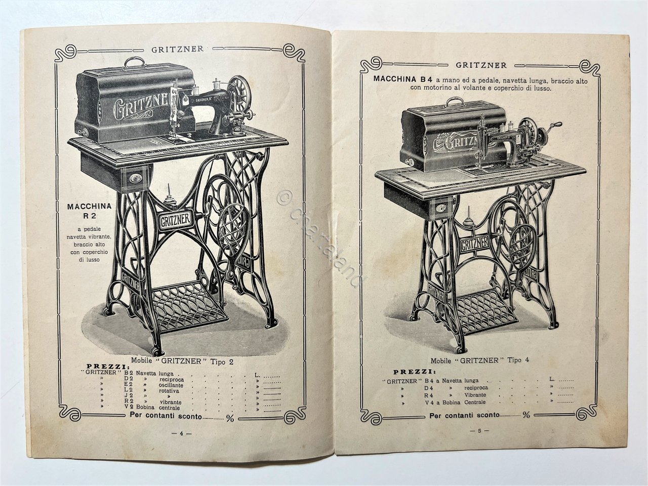 Catalogo - Gritzner Durlach - Macchine da Cucire con Mobile di Lusso - Primi 900 Testo in lingua italiana. Pagine 8 con illustrazioni. Copertina morbida. Condizioni molto buone con piccoli segni del tempo come da foto.