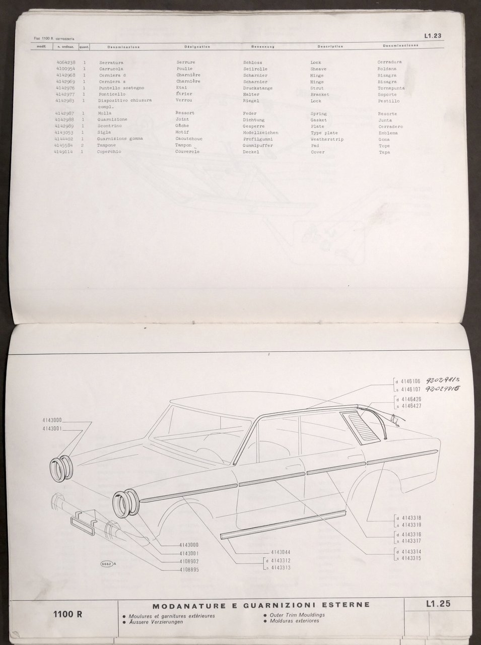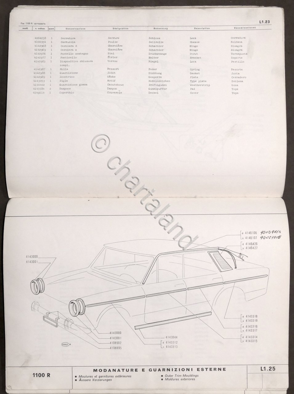Catalogo parti di ricambio carrozzeria Fiat 1100 R - 1^ ed. 1966 | Libri antichi e moderni |
