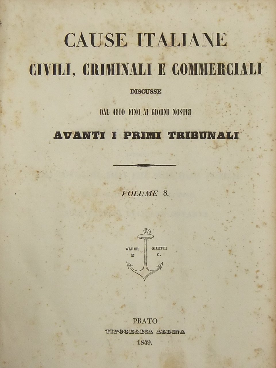 Cause italiane civili, criminali e commerciali discusse dal 1800 fino ai nostri giorni avanti i primi tribunali. Volume 8 | Libri antichi e moderni | Autori Vari