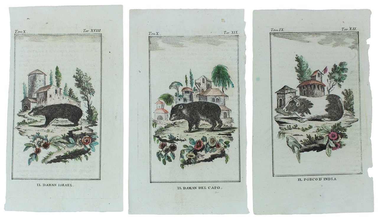 (Codice SN/0682) Serie di 3 graziose tavole originali in rame, sciolte (cm 17,5x11 circa), acquerellate a mano. Ciascuna illustra una diversa specie. Alleghiamo fotocopia del frontespizio di uno dei tomi. Ottimo stato. ~~~ SPEDIZIONE IN ITALIA SEMPRE TRACCIATA