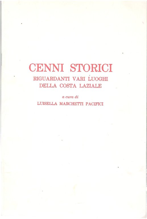 Cenni Storici Riguardanti Vari Luoghi Della Costa Laziale | Libri antichi e moderni | Marchetti Pacifici, Luisella a cura Di, Marchetti Pacifici, Luisella