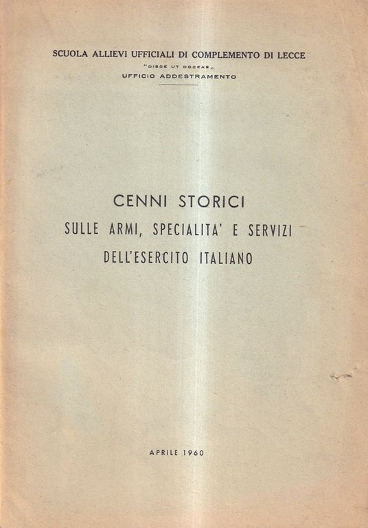 Cenni storici sulle armi, specialità e servizi dell'esercito italiano | Libri antichi e moderni | S.a.