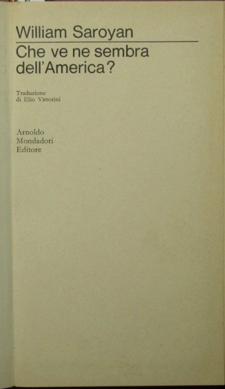 Che ve ne sembra dell'America? | Libri antichi e moderni | Saroyan William