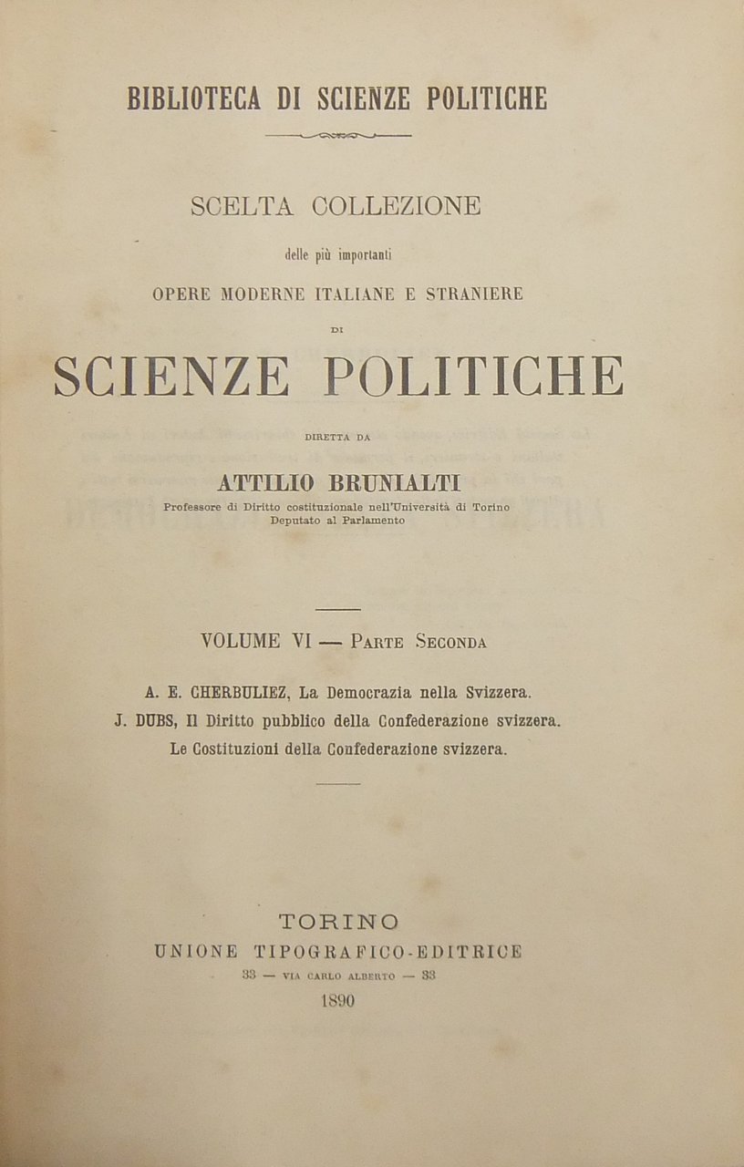 Cherbuliez - La democrazia nella Svizzera. Dubs - Il diritto pubblico della Confederazione svizzera. Le Costituzioni della Confederazione svizzera